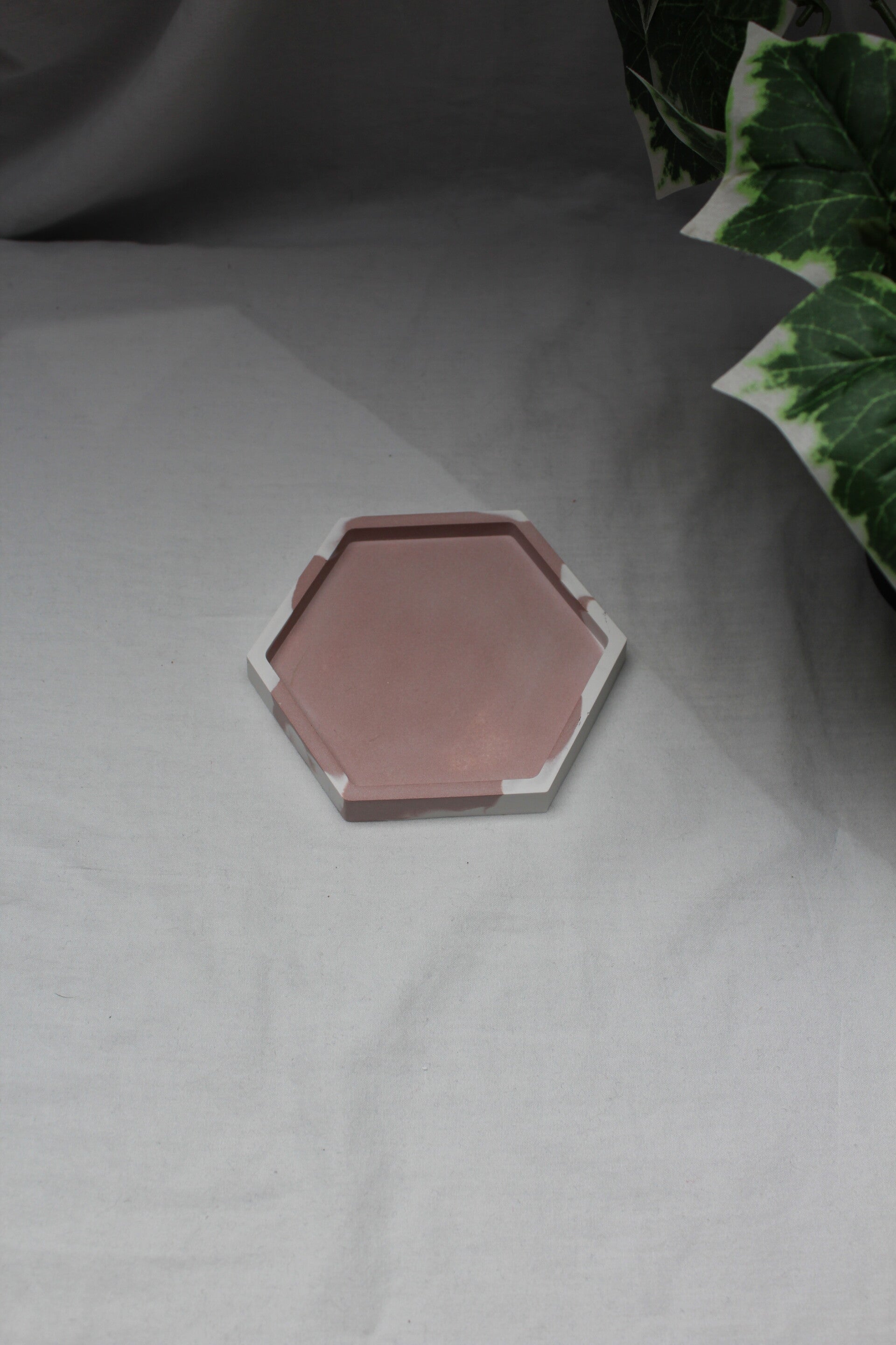 Breng een vleugje elegantie in je interieur met deze stijlvolle zeshoekige onderzetter. Met de hand gegoten en verfijnd is dit item perfect als onderzetter, sieradenschaaltje of minimalistisch decoratiestuk.