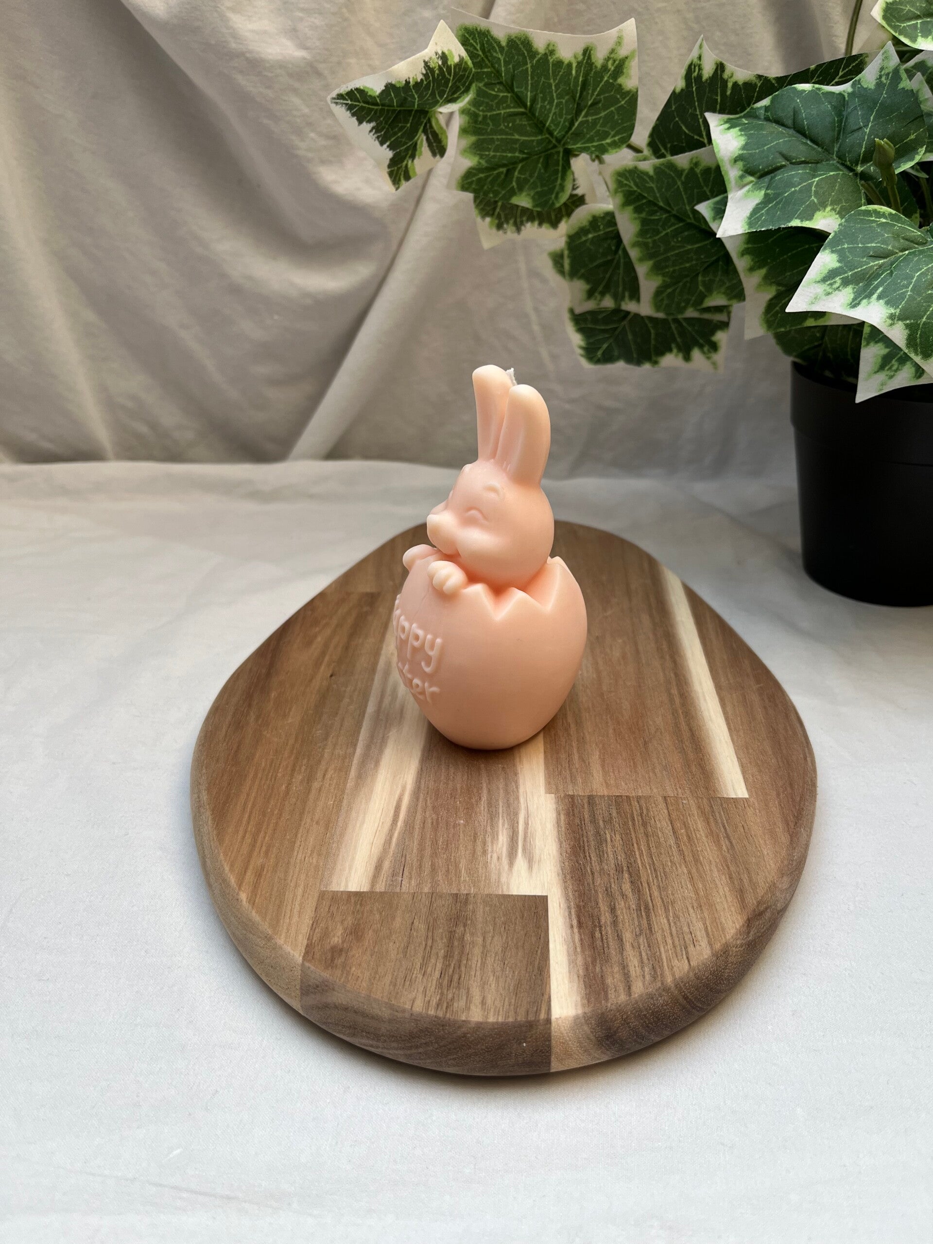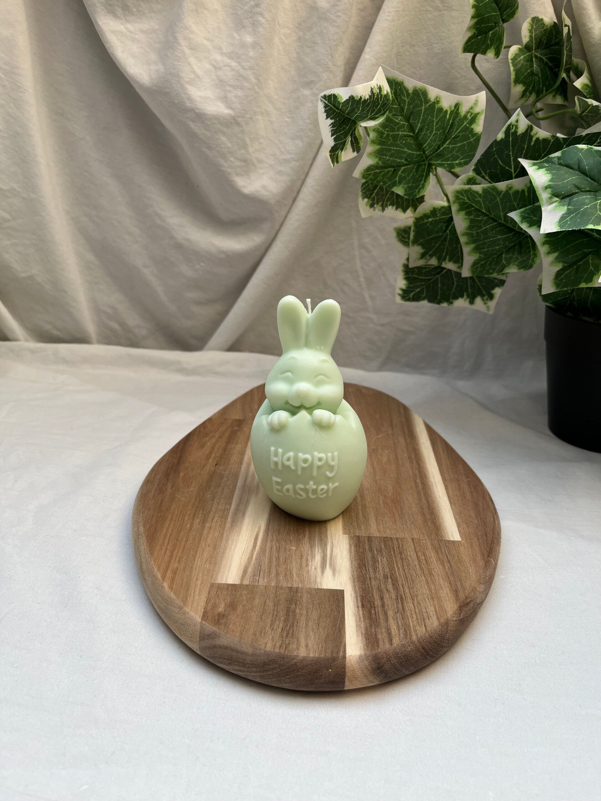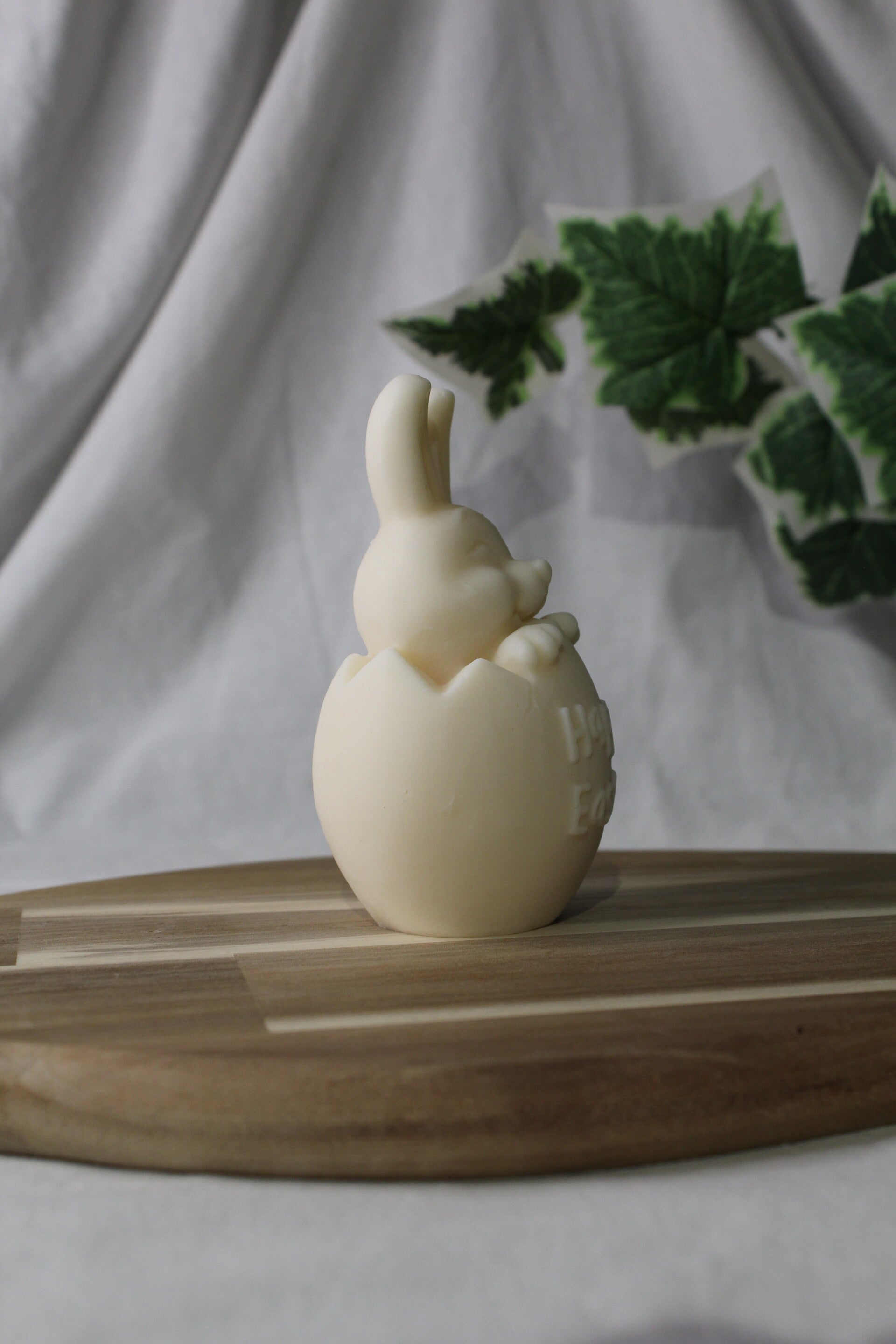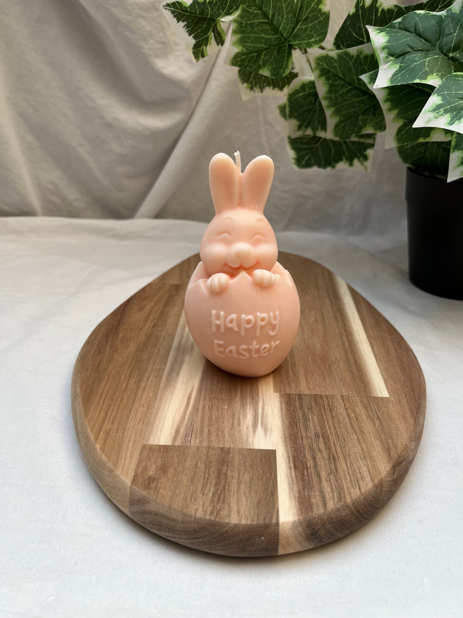 Vier Pasen in stijl met deze vrolijke paaskaarsen in de vorm van een schattige paashaas die uit een ei komt. De tekst "Happy Easter" is verwerkt op het ei en maakt dit een perfect decoratiestuk voor Pasen.