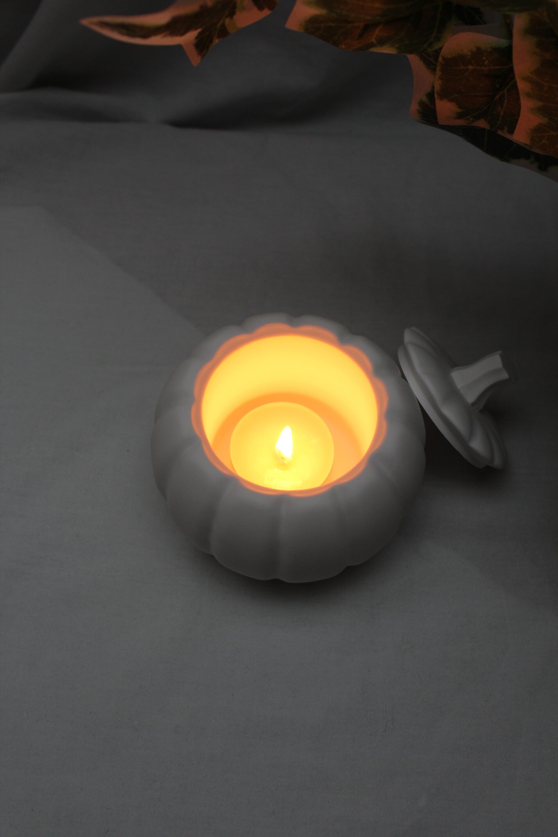Breng warmte en sfeer in huis met deze stijlvolle pompoen theelichthouder. Gemaakt van gips inclusief dekseltje. Perfect voor Halloween en de herfst, maar ook gezellig het hele jaar door.